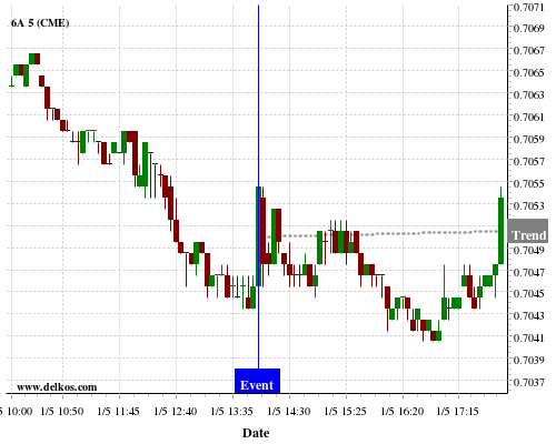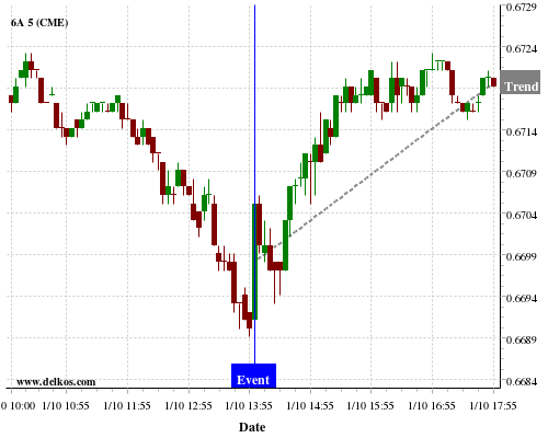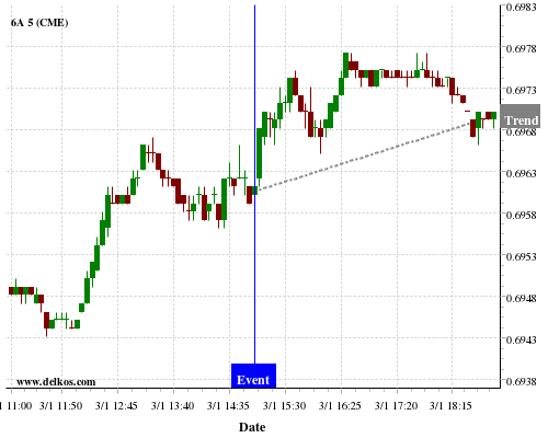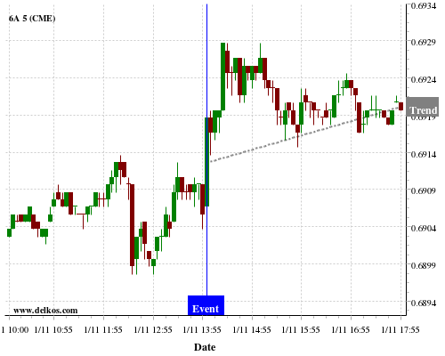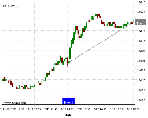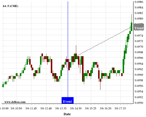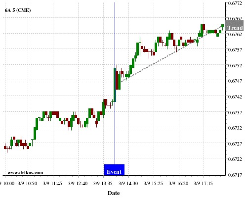 If the number is less than than economists’ consensus there is a 77.77% probability that 6A will trend up following the news event.
