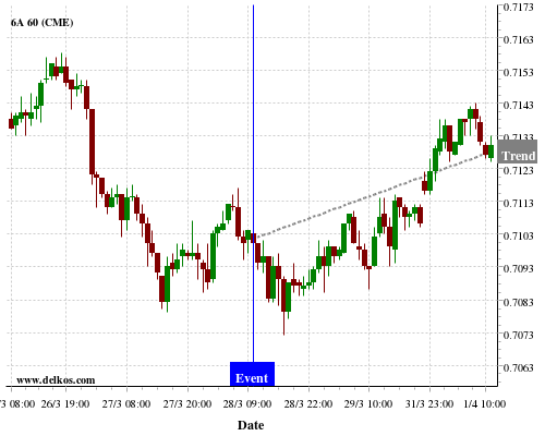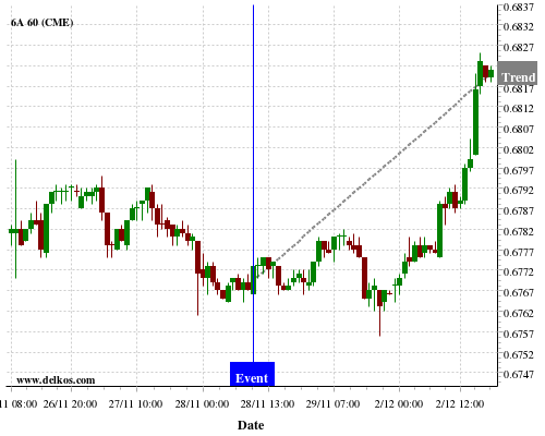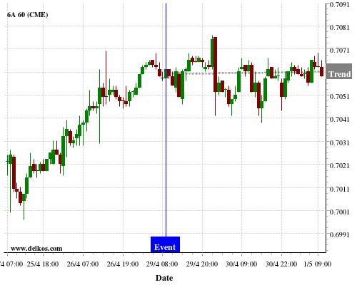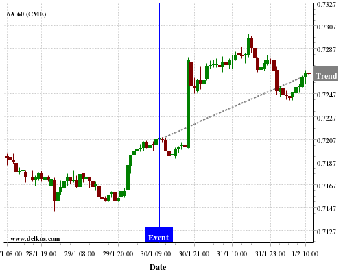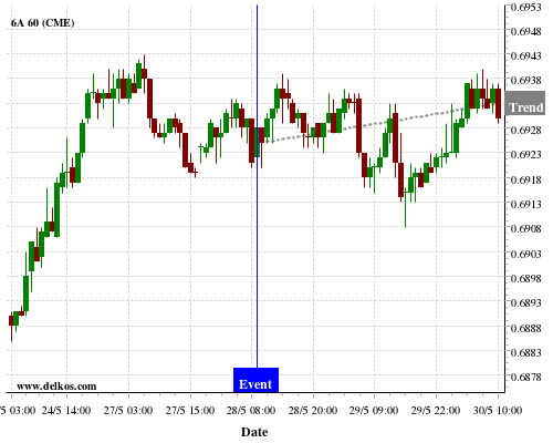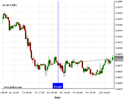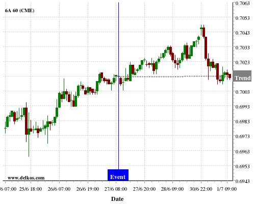 If the number is less than than economists’ consensus there is a 77.77% probability that 6A will trend up following the news event.