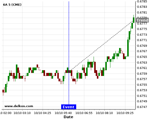 If the number is greater than than economists’ consensus there is a 77.77% probability that 6A will trend up following the news event.