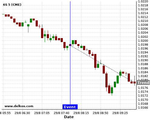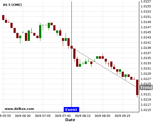 If the number is equal to than economists’ consensus there is a 77.77% probability that 6S will trend down following the news event.