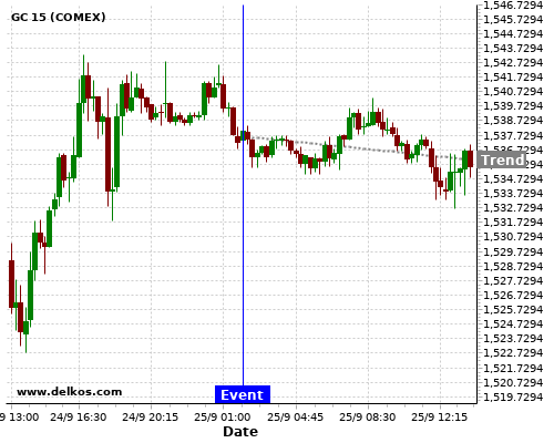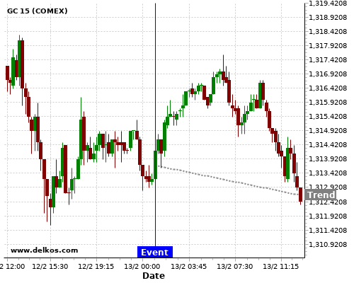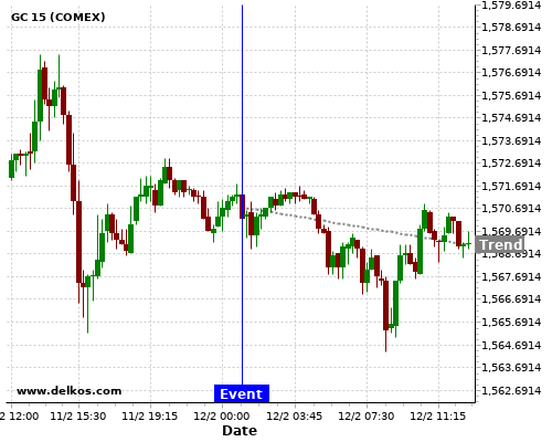 If the number is equal to than economists’ consensus there is a 77.77% probability that GC will trend down following the news event.