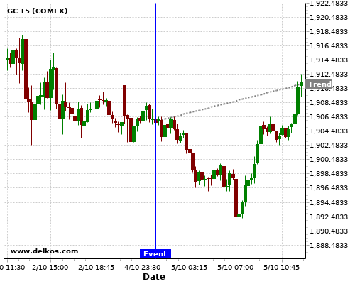 If the number is greater than than economists’ consensus there is a 77.77% probability that GC will trend up following the news event.