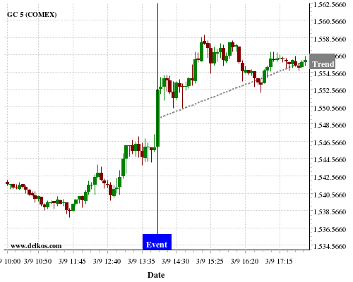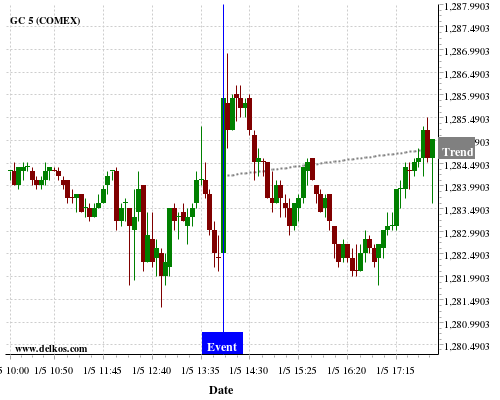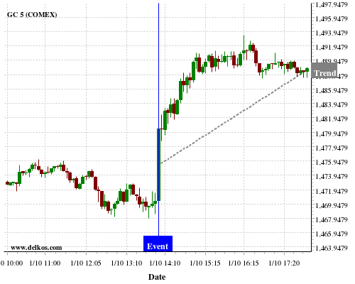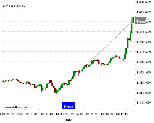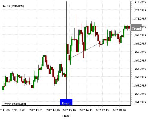 If the number is less than than economists’ consensus there is a 77.77% probability that GC will trend up following the news event.