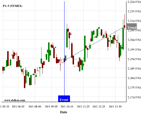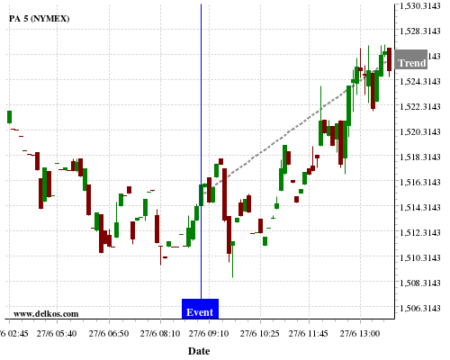 If the number is less than than economists’ consensus there is a 77.77% probability that PA will trend up following the news event.