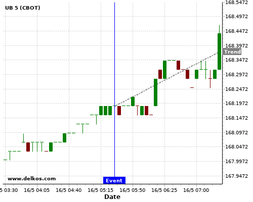 This probability is based on the last 12 FR Unemployment Rate events, in which 7 of the last 9 events where the actual number was less than than the economist consensus resulted in an up trend of UB.