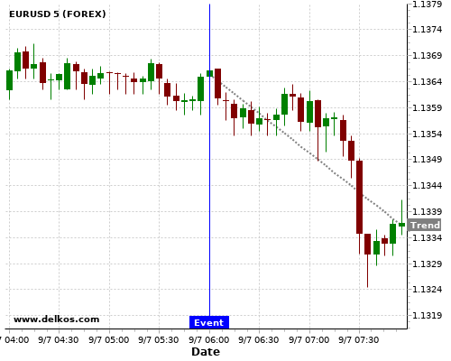Если показатель меньше чем консенсус экономистов существует 80% вероятность того, что EURUSD будет падать после новостного события.