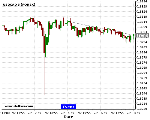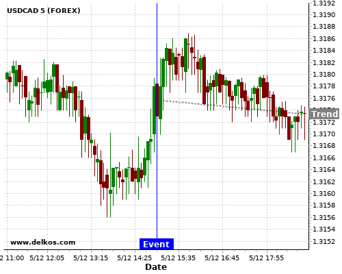 Если показатель Выше чем консенсус экономистов существует 80% вероятность того, что USDCAD будет падать после новостного события.