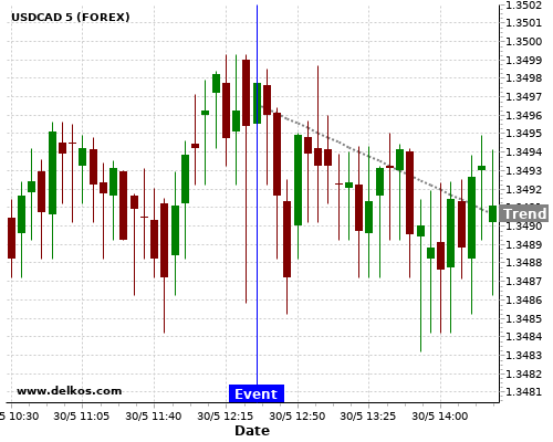 Если показатель равно консенсус экономистов существует 80% вероятность того, что USDCAD будет падать после новостного события.