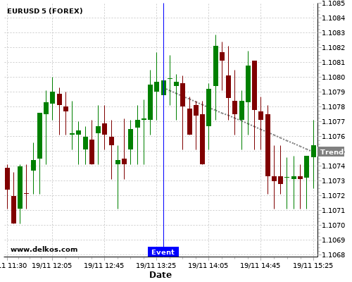 If the number is less than than economists’ consensus there is a 80% probability that EURUSD will trend down following the news event.