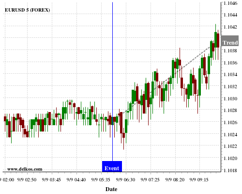 If the number is greater than than economists’ consensus there is a 80% probability that EURUSD will trend up following the news event.