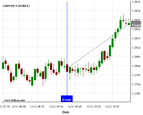 If the number is less than than economists’ consensus there is a 80% probability that GBPUSD will trend up following the news event.