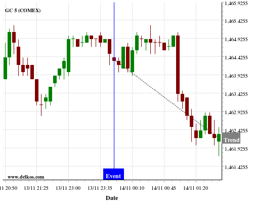 If the number is less than than economists’ consensus there is a 80% probability that GC will trend down following the news event.