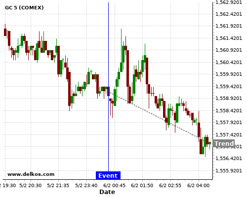 If the number is less than than economists’ consensus there is a 80% probability that GC will trend down following the news event.