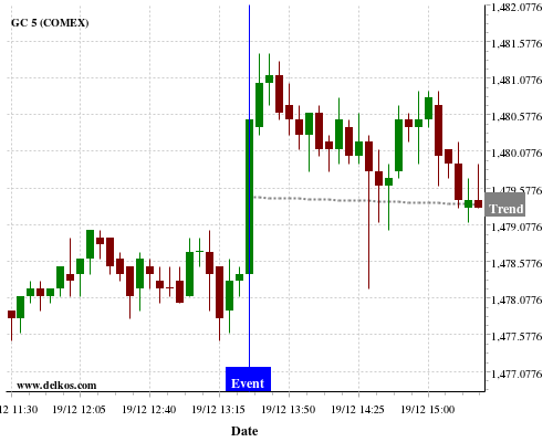 This probability is based on the last 12 US Philadelphia Fed Manufacturing Index events, in which 4 of the last 5 events where the actual number was less than than the economist consensus resulted in an down trend of GC.