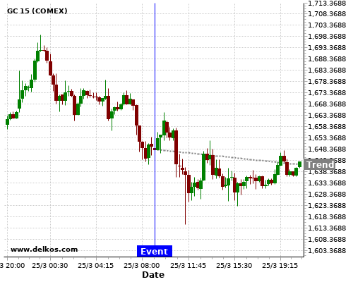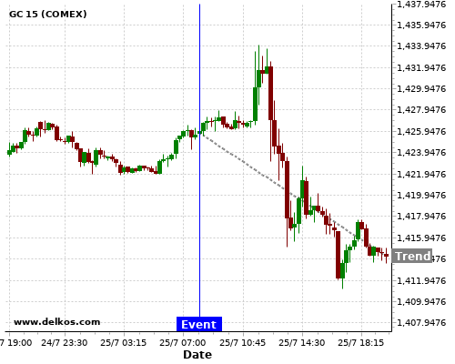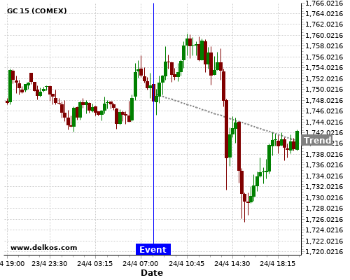 If the number is less than than economists’ consensus there is a 80% probability that GC will trend down following the news event.