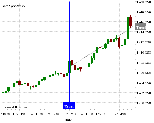 If the number is less than than economists’ consensus there is a 80% probability that GC will trend up following the news event.