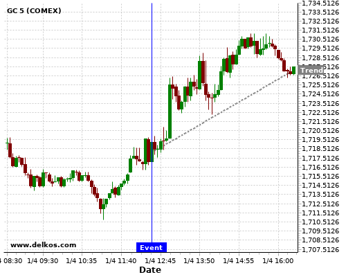 If the number is greater than than economists’ consensus there is a 80% probability that GC will trend up following the news event.