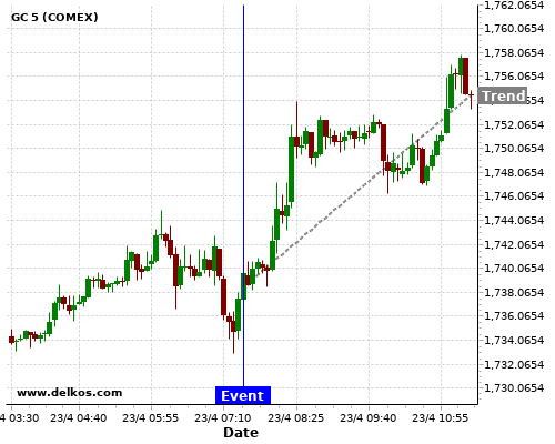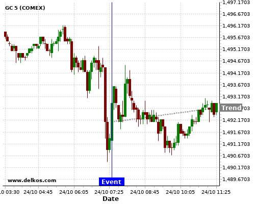 If the number is less than than economists’ consensus there is a 80% probability that GC will trend up following the news event.