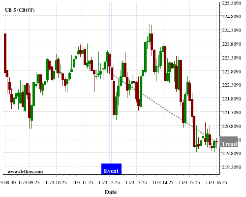 If the number is greater than than economists’ consensus there is a 80% probability that UB will trend down following the news event.