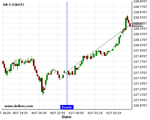 This probability is based on the last 12 JP Unemployment Rate events, in which 4 of the last 6 events where the actual number was less than than the economist consensus resulted in an up trend of UB.