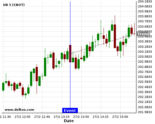 This probability is based on the last 12 US GDP Growth Rate QoQ 2nd Est events, in which 1 of the last 5 events where the actual number was equal to than the economist consensus resulted in an up trend of UB.