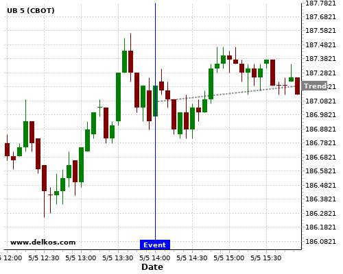 This probability is based on the last 12 US ISM Non-Manufacturing PMI events, in which 4 of the last 5 events where the actual number was less than than the economist consensus resulted in an up trend of UB.