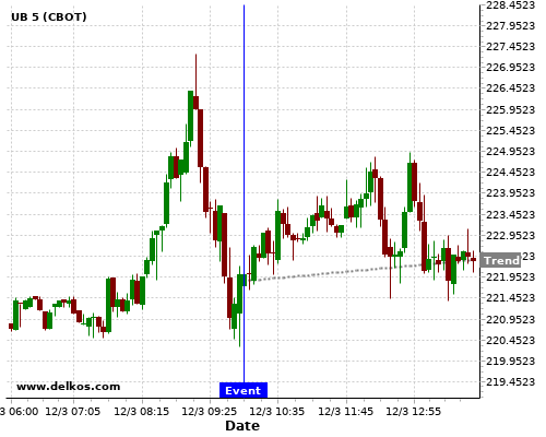 This probability is based on the last 12 EMU Industrial Production YoY events, in which 4 of the last 5 events where the actual number was greater than than the economist consensus resulted in an up trend of UB.