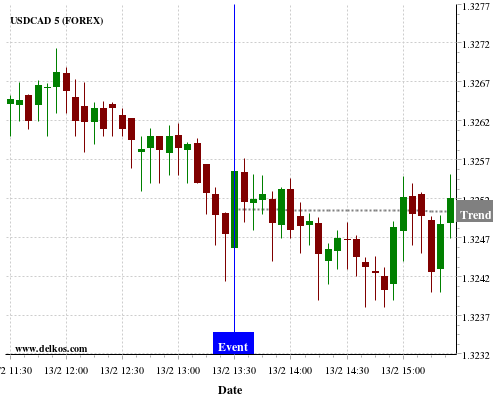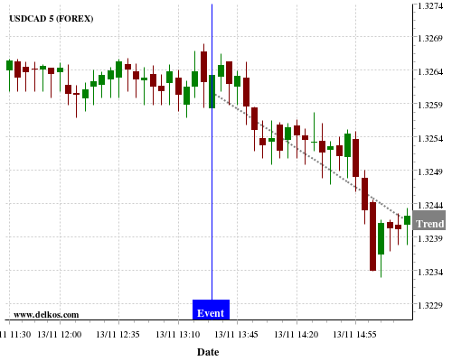 If the number is greater than than economists’ consensus there is a 80% probability that USDCAD will trend down following the news event.
