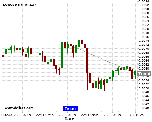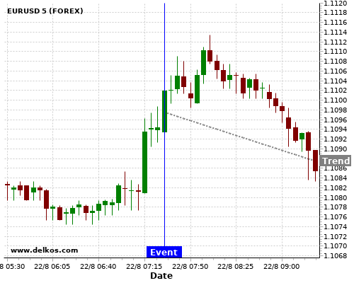Если показатель Выше чем консенсус экономистов существует 83.33% вероятность того, что EURUSD будет падать после новостного события.