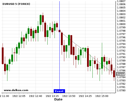 Эта вероятность основывается на последних 12 новостных событиях US Housing Starts, во время которых в 5 из 6 случаев, когда фактическое значение показателя было Выше чем консенсус экономистов – будет падать EURUSD.