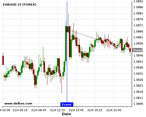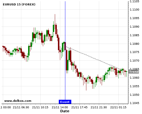 Если показатель меньше чем консенсус экономистов существует 83.33% вероятность того, что EURUSD будет падать после новостного события.