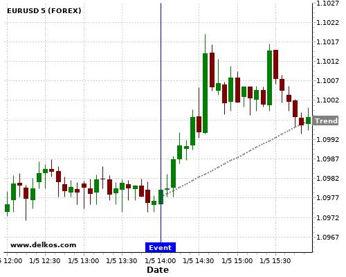 Эта вероятность основывается на последних 12 новостных событиях US ISM Manufacturing PMI, во время которых в 5 из 6 случаев, когда фактическое значение показателя было Выше чем консенсус экономистов – будет расти EURUSD.
