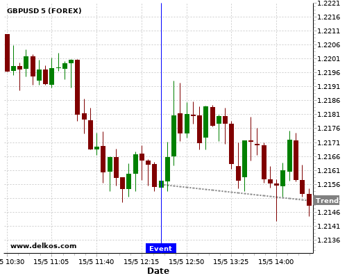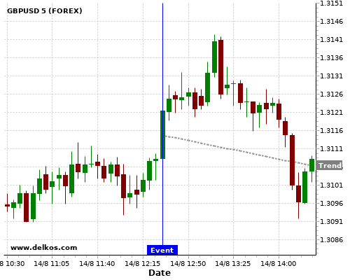 Эта вероятность основывается на последних 12 новостных событиях US Retail Sales MoM, во время которых в 5 из 6 случаев, когда фактическое значение показателя было меньше чем консенсус экономистов – будет падать GBPUSD.