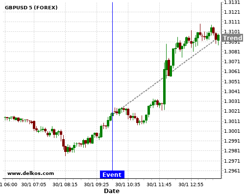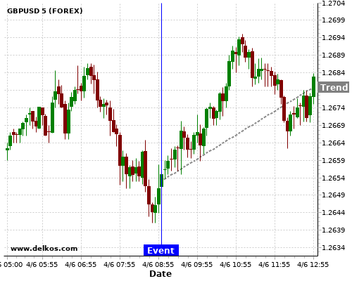 Эта вероятность основывается на последних 12 новостных событиях EMU Unemployment Rate, во время которых в 5 из 6 случаев, когда фактическое значение показателя было меньше чем консенсус экономистов – будет расти GBPUSD.
