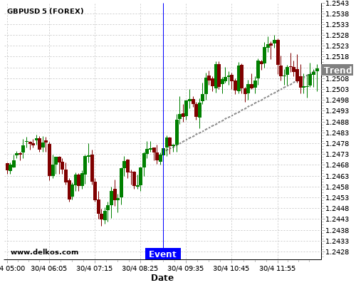 Если показатель меньше чем консенсус экономистов существует 83.33% вероятность того, что GBPUSD будет расти после новостного события.