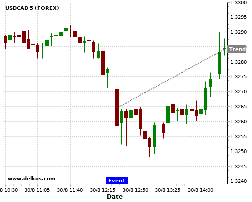 Если показатель Выше чем консенсус экономистов существует 83.33% вероятность того, что USDCAD будет расти после новостного события.