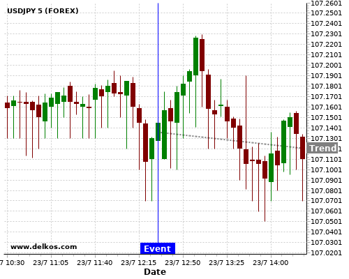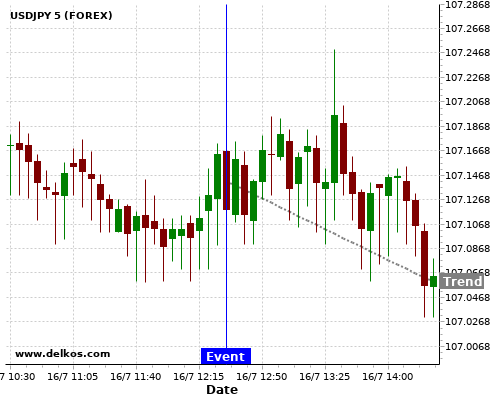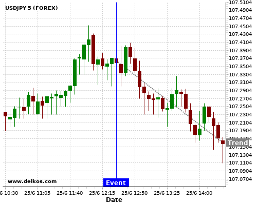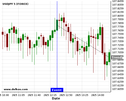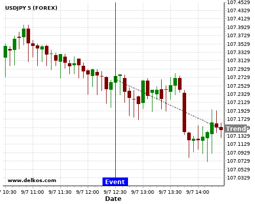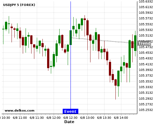 Эта вероятность основывается на последних 12 новостных событиях US Continuing Jobless Claims, во время которых в 6 из 6 случаев, когда фактическое значение показателя было меньше чем консенсус экономистов – будет падать USDJPY.