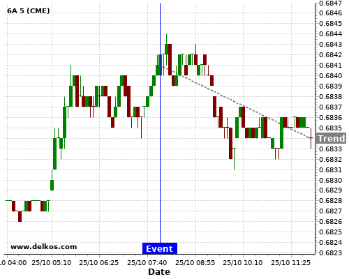 If the number is greater than than economists’ consensus there is a 83.33% probability that 6A will trend down following the news event.