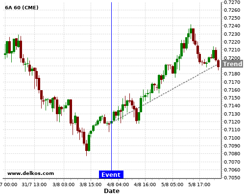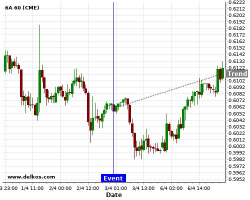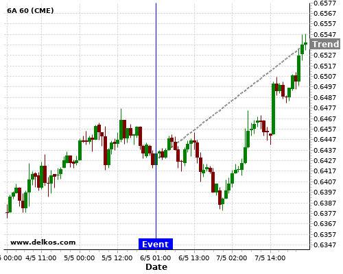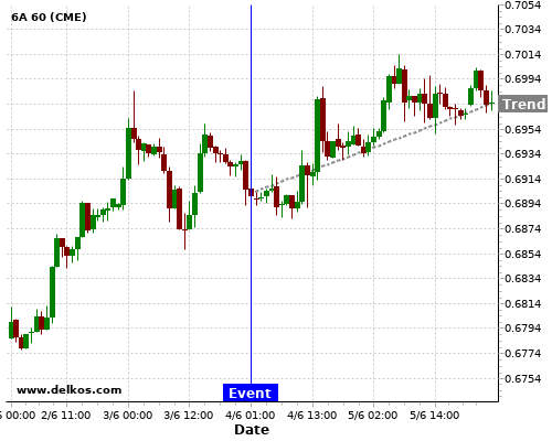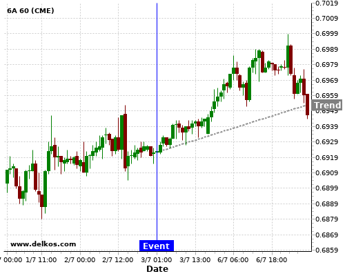 If the number is greater than than economists’ consensus there is a 83.33% probability that 6A will trend up following the news event.