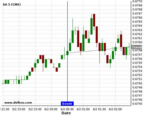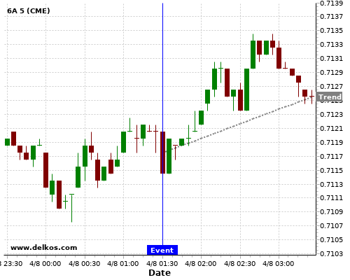 If the number is less than than economists’ consensus there is a 83.33% probability that 6A will trend up following the news event.