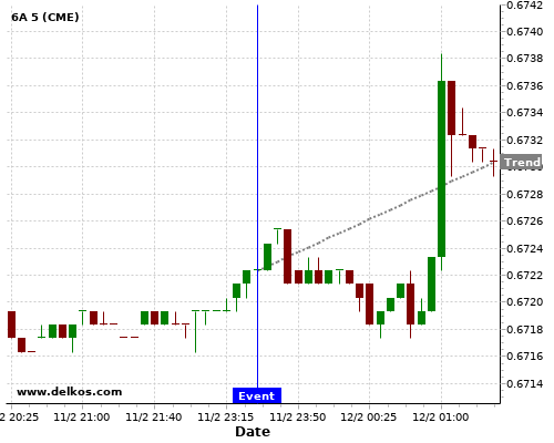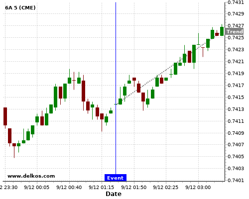 If the number is greater than than economists’ consensus there is a 83.33% probability that 6A will trend up following the news event.
