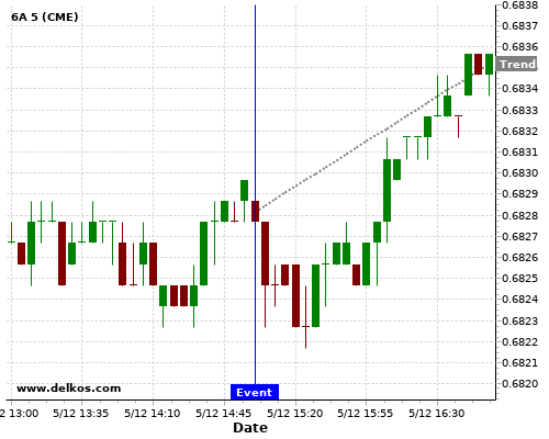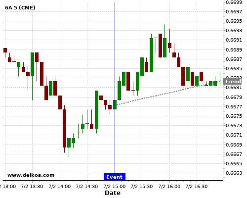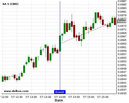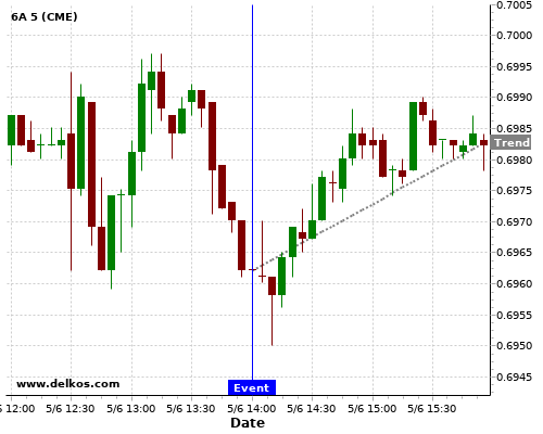 If the number is greater than than economists’ consensus there is a 83.33% probability that 6A will trend up following the news event.