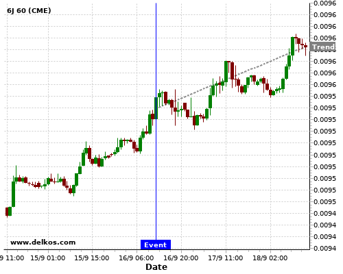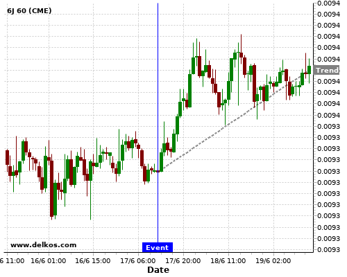 If the number is less than than economists’ consensus there is a 83.33% probability that 6J will trend up following the news event.
