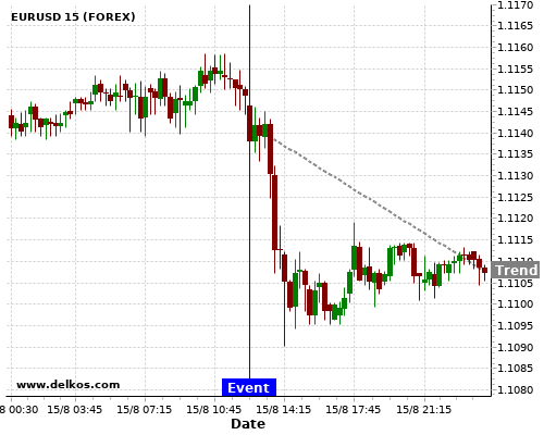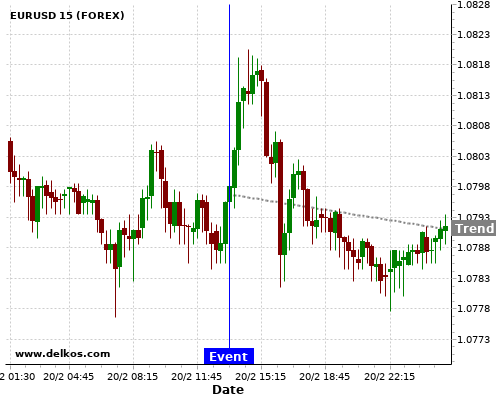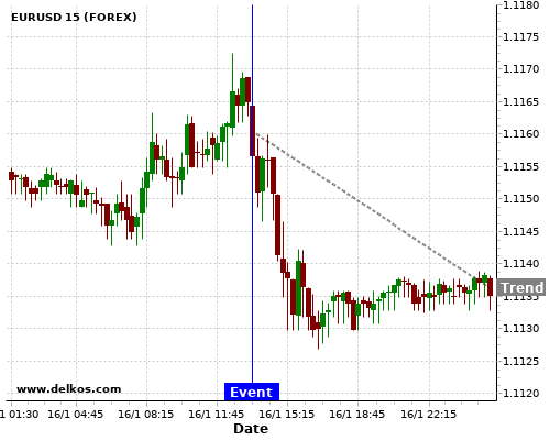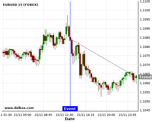 If the number is greater than than economists’ consensus there is a 83.33% probability that EURUSD will trend down following the news event.
