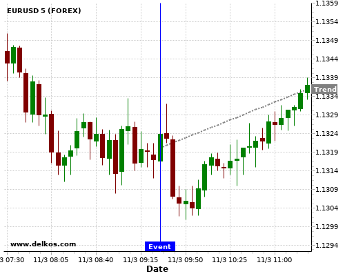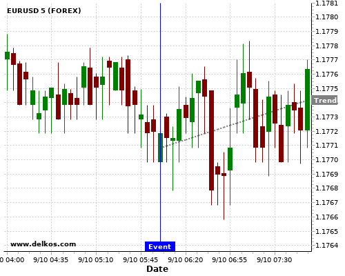 If the number is greater than than economists’ consensus there is a 83.33% probability that EURUSD will trend up following the news event.