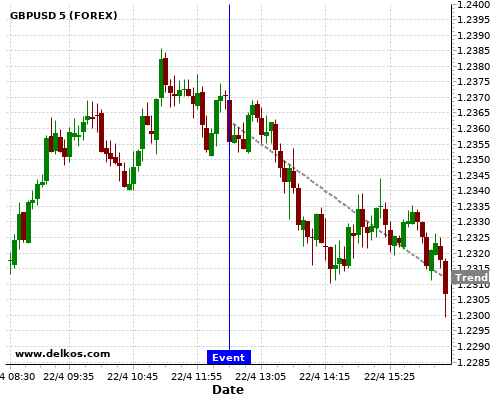 If the number is less than than economists’ consensus there is a 83.33% probability that GBPUSD will trend down following the news event.