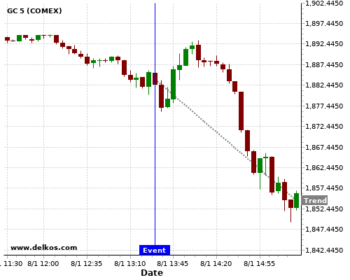 If the number is less than than economists’ consensus there is a 83.33% probability that GC will trend down following the news event.