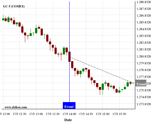 If the number is greater than than economists’ consensus there is a 83.33% probability that GC will trend down following the news event.