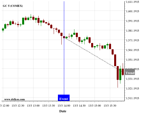 If the number is greater than than economists’ consensus there is a 83.33% probability that GC will trend down following the news event.
