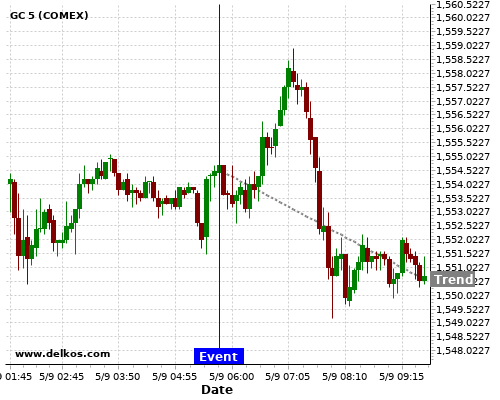 If the number is greater than than economists’ consensus there is a 83.33% probability that GC will trend down following the news event.
